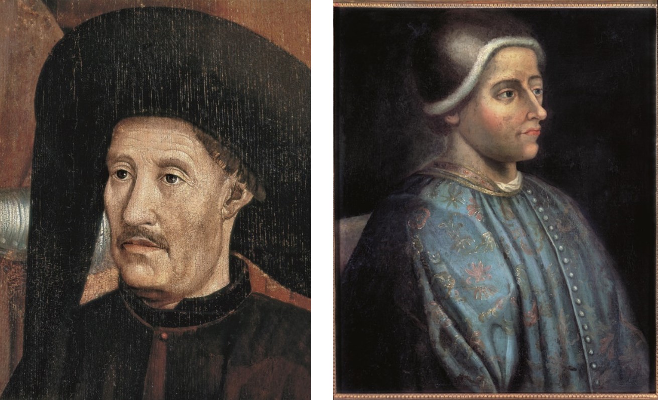 葡萄牙王子航海者亨利肖像,15世纪(左图);国王查理七世的财务官和商人雅克·科尔肖像,15世纪(右图)。