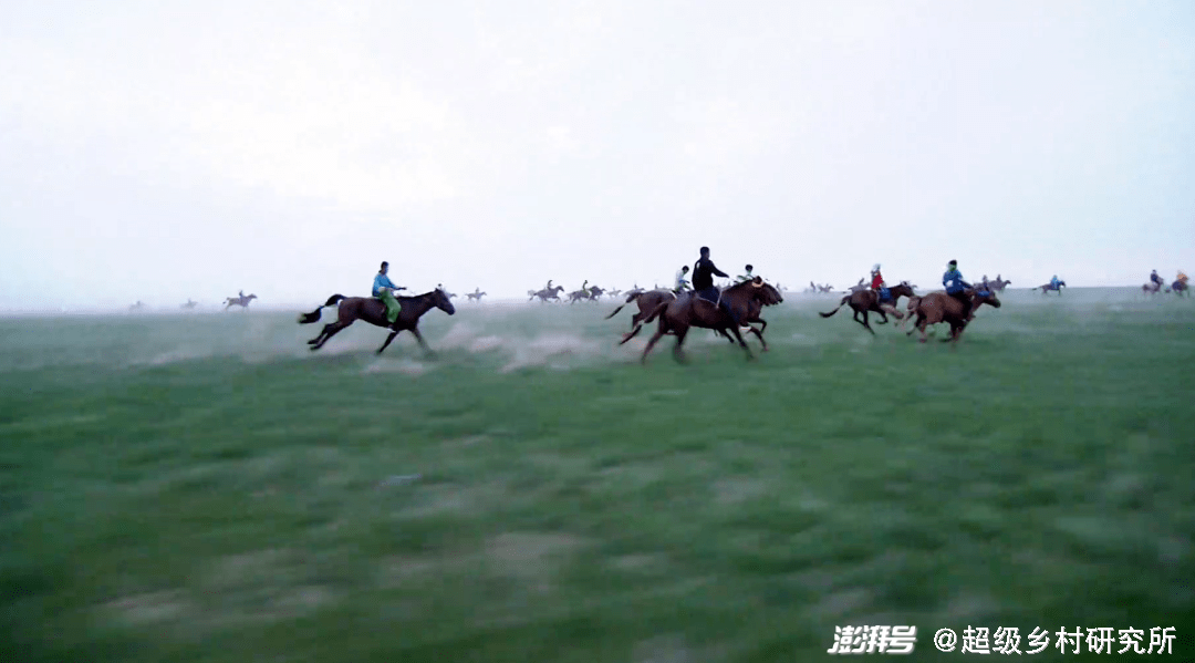 天刚破晓,赛马比赛正式开始,赛场上万马奔腾,蹄声震撼,小骑手们一路催马扬鞭,跃马驰骋。