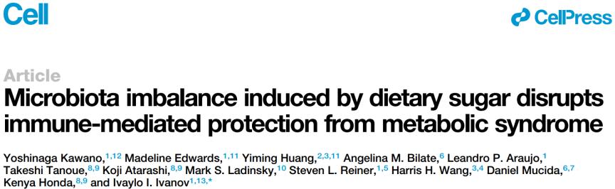 奶茶、炸鸡、可乐……越来越多的美味占据了我们的食谱。但是可谓吃时一时爽,减肥火葬场。大家已经知道高糖高脂饮食与肥胖、糖尿病等代谢疾病密切关系,但是没想到肠道菌群和免疫细胞也会参与到这其中的爱恨情仇!近日,来自哥伦比亚大学的Ivaylo I. Ivanov团队在《细胞》期刊发表重要研究成果,他们发现Th17细胞可以抑制肠上皮脂质吸收,从而预防代谢性疾病的发生;而饮食中的糖会破坏小鼠肠道菌群平衡,导致Th17细胞减少,增加代谢疾病风险[1]。