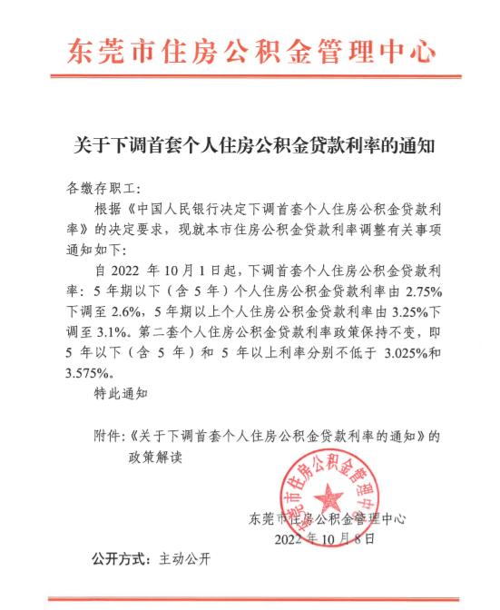 最新!东莞首套个人住房公积金贷款利率有变化!