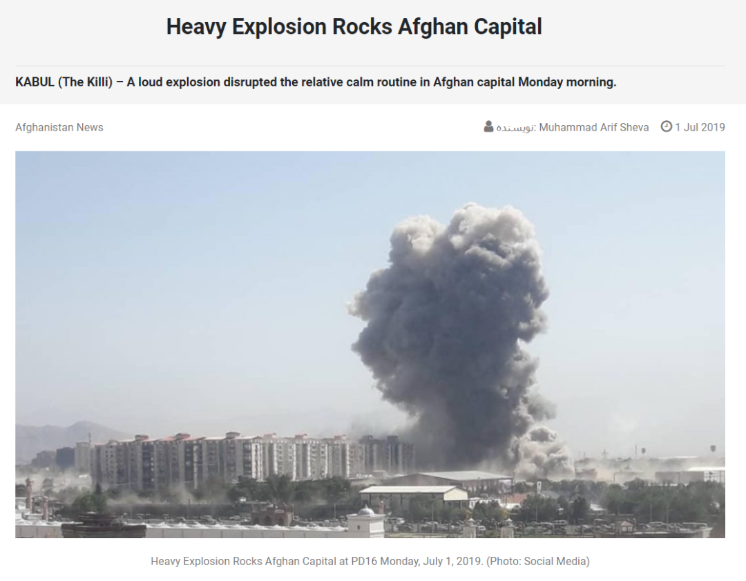 视频中所附网页插图,经反搜后可以确认并非克里米亚大桥爆炸现场照片,最早发布于2019年,据阿富汗当地媒体基里德的说法,为2019年7月1日阿富汗首都喀布尔大爆炸图片。