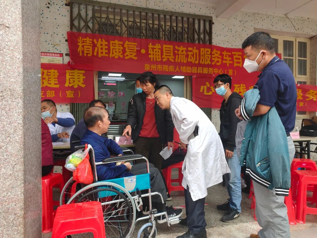 图为开展康复义诊和心理咨询服务“双下乡”活动一方面,经济上“减压”,康复救助补贴政策不断加码,减轻残疾人家庭经济负担,确保康复训练的延续性。2016年,泉州市在全省率先把残疾儿童康复救助补贴范围扩大到0—14岁。2011年至2020年,全市投入1.5亿多元,救助万余人次残疾儿童康复。2021年再次提标扩面,救助年龄从14岁提高到17岁,救助标准提高到每人每年17000元。2017年起,在全省率先将脑瘫和听障儿童康复纳入医保门诊特殊病种范围,除儿童康复救助补贴外,每年可叠加最高15万元的医保报销。2018年至2021年5月,医保统筹基金共支付两类儿童康复费用1129.26万元,受益儿童35781人次。2018年,在全省率先实行假肢矫形器、助听器适配市级叠加补贴政策。截至目前,已发放辅具适配补贴近千万元,惠及6000多名残疾人,残疾人基本康复服务率和辅具适配服务率均达100%。除了残疾儿童康复,精神残疾人服药、住院也纳入康复补助范畴,每年投入400多万元为2000多名精神残疾人提供服药住院补助。
