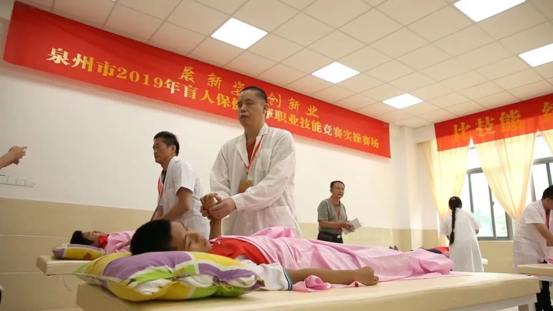 图为举办全市盲人保健按摩职业技能竞赛“十三五”期间,全市共举办技能技术培训130多期、受训残疾人近7000人次,项目涵盖电子商务、盲人按摩、中式烹饪、糕点制作、茶叶加工、美容美甲等职业技能以及农村种植、养殖、小加工项目等。近年来,全市共有23人次获“全国技术能手”“泉州市高层次人才”“泉州工匠”“泉州市工艺美术大师”“泉州市技术能手”等荣誉称号。