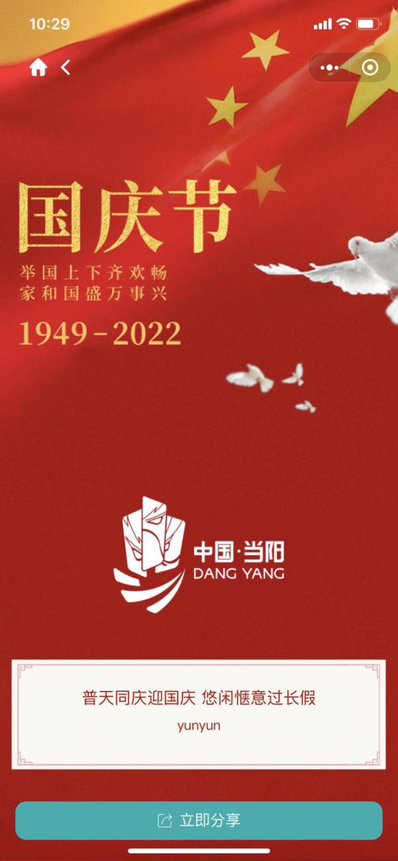 即可生成当阳主题的个人电子名片