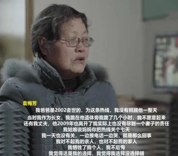 接受采访时,袁梅芳70岁了,身体大不如前,热线里的称呼也从“袁阿姨”变成了“袁奶奶”。去年因为一段视频,袁梅芳再度被媒体关注。那一天,她一共接到89个来访电话,累得说不出话来。女儿劝她停几天热线。她说:“只要身体没问题,我就会一直坚持做下去。我帮助别人,你爸在天上看到了也会高兴。”