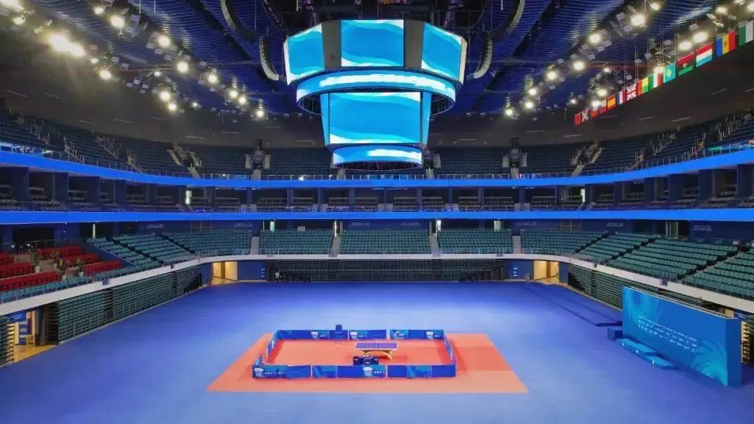 ▲成都世乒赛团体赛主场馆 成都高新体育中心场馆中,8张比赛球台和30张训练热身球台,则为全体参赛运动员、教练员提供了具有国际一流标准的竞技训练场地。这一点,国内外运动员多次在接受采访时不吝赞美。