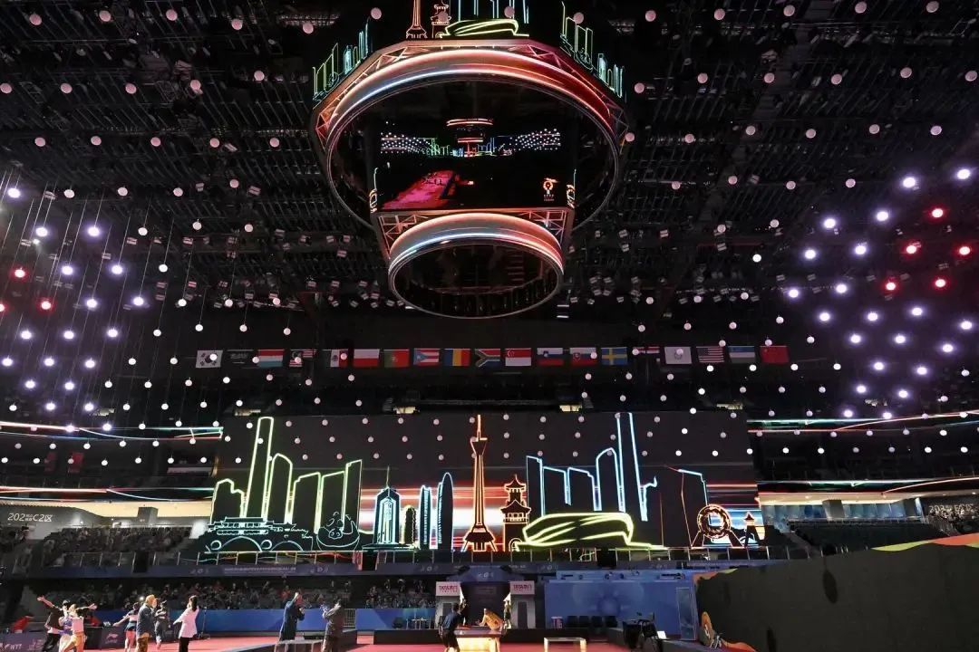 开幕式上,560颗象征乒乓球的发光LED灯球,点亮成都高新体育中心多功能馆天幕,围绕乒乓球运动、全民健身、中国文化展开节目表演,为全球呈现了一场独具中国风格、展现成都文化、富有乒乓特色的开幕式。