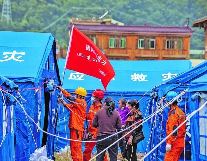 ▲国家电网四川电力连心桥共产党员服务队队员为泸定县磨西镇杉树村安置点帐篷安装临时电源在抗疫保电中作出“国网贡献”——应对新冠肺炎疫情,公司出台一系列举措,助力打赢疫情防控阻击战,助“六稳”、促“六保”,在服务大局中彰显央企本色。三天三夜、五天五夜,雷神山、火神山医院相继通电。降电价、早复工、扩投资、稳就业,公司一系列服务举措先后落地。“国网行动”始终与国家全局深度融合,为经济恢复积蓄力量。在常态化疫情防控期间,公司慎终如始、毫不松懈,全力保障医院、隔离点等重要场所安全供电,科学调度做好电力保供,推广线上“无接触”办电服务,守护好万家灯火,积极服务经济社会平稳运行。
