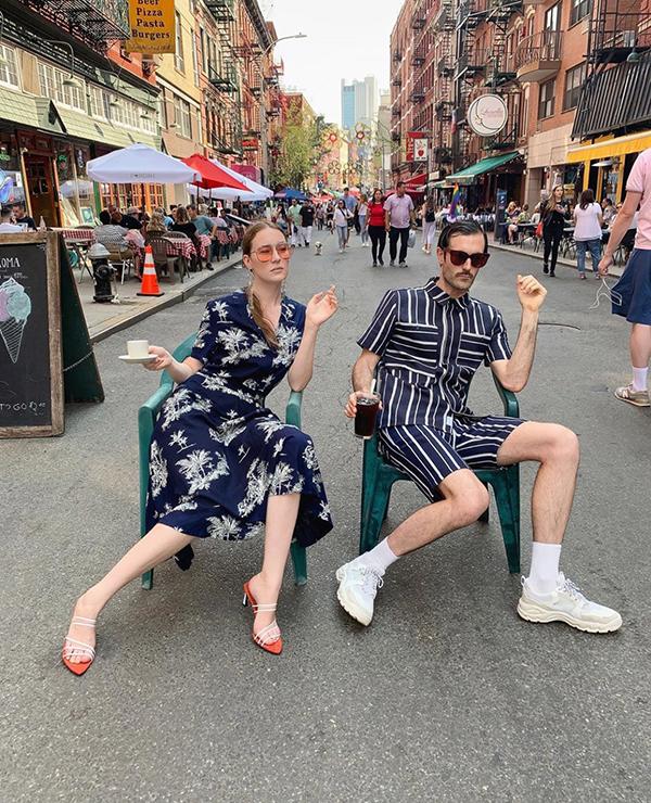他们二人还在ins上建立了自己的账号,凭借他们丰富、不落俗套的情侣穿搭很快就吸引了大批的粉丝。很多年轻人通过他们学习了更时髦、更有品味的情侣装穿法——不必两个人完全一样,而是互相映衬。