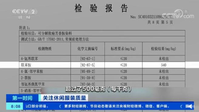 超标衣物染料可能改变人体DNA结构。近期,国家市场监督管理总局开展抽检。在检测过程中,一件标称为深圳市安若依电子商务有限公司生产的时尚女装,被检出一种名为“联苯胺”的可致癌芳香胺染料超标,而且超标非常严重。