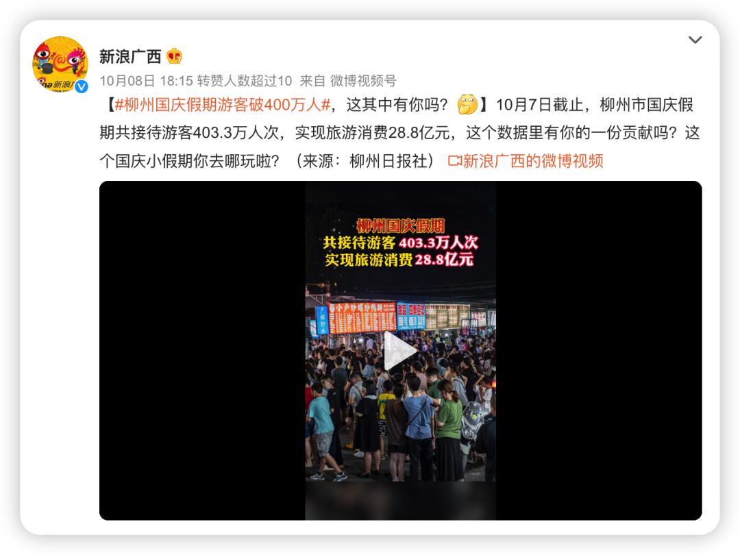 今年国庆,7天超过400万人打卡柳州,它也成功出圈,成为今年“反向旅游”的最大赢家之一。