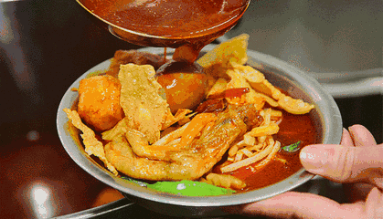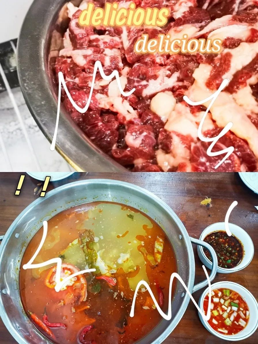 除了牛杂外,建议也点一些牛肉,切得薄薄的牛肉在锅里涮几下就熟,再蘸一口店里特有的辣酱,入口超级香,炫到停不下来。
