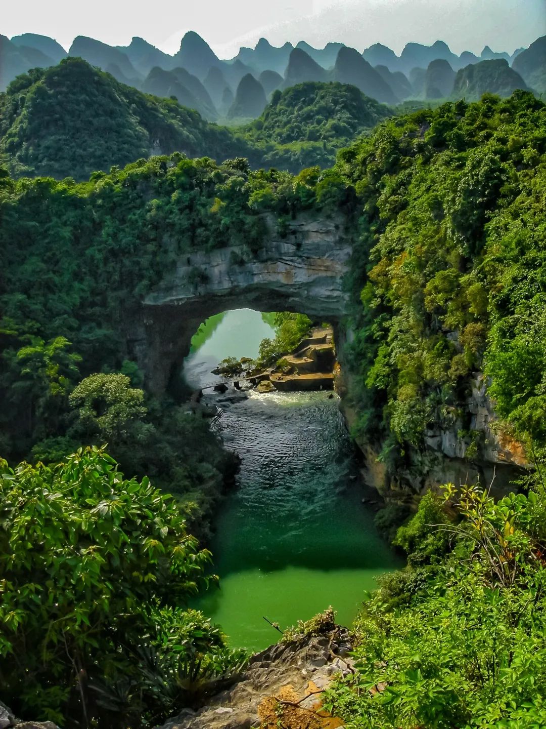 水上天生桥是地质公园里最惊艳的景点,它生长在峡谷两侧的青山上,与周围的山水完美融合。