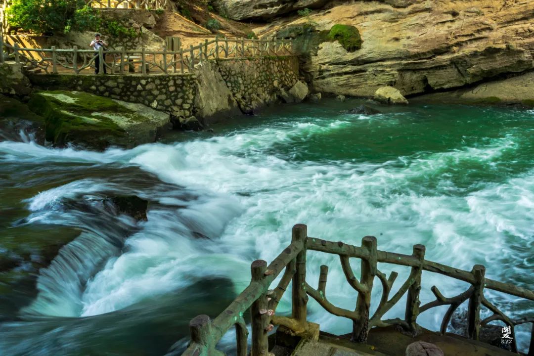 @图虫创意这里的水也是一绝,浅绿、浅蓝、深绿、深蓝……至少拥有5种颜色。走到香桥大峡谷的峡口,还有一座响水瀑布,飞瀑流丝超好看。