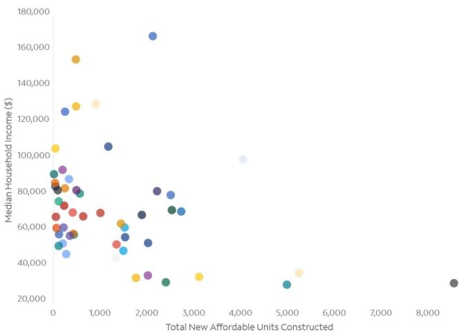 有一系列支持可负担住房的市、州和联邦项目,每个项目的目标都是为收入不超过地区收入中位数(AMI)的一定比例的家庭提供可负担的住房单元。一些由市政府资助的补贴可能为收入远低于AMI的家庭提供公寓,如四口之家约为4万美元。