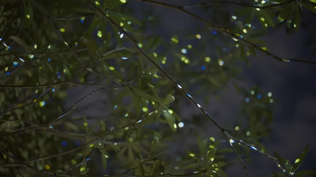 来到朱家湾,忽见绿映画屏的光影空间宛如屏扇徐徐展开。一时流水潺潺、绿树生长、鲜花绽放,赋予了场地新的生机;一时墙上的月光与婆娑树影间,挥舞的水袖演绎着动人的故事;又一时地面仿佛融化成碧波池塘,赤色鲤鱼纷纷游走,泛起涟漪,与行人交相互动。