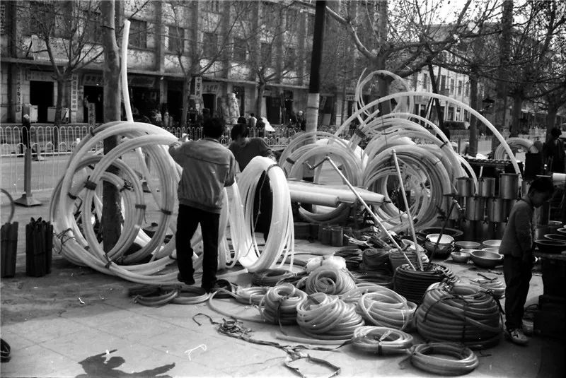 1992年底被招聘到县委宣传部从事专职新闻摄影以后,腿长了,机会多了,就更加关注地滩经济这一群体生活和劳做的艰辛和不易,拍摄和纪录他们也是在拍摄我自己。每一个流动摊点的背后都是一个家庭的生计。他们同商场超市进行不等量的存在与竟争。既有高大上的商城,也有接地气的地摊,满足不同人群多样化、多层次的消费需求。