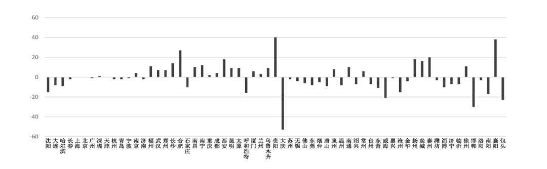 分地区来看,东部地区省会城市和地级城市,经济增长率差距大幅度减少,区域渐趋平衡发展,而中西部省会城市位次总体上升幅度极大,而地级城市下降幅度较大,经济增长率差距快速扩大,省域层面的两极分化现象较为严重。