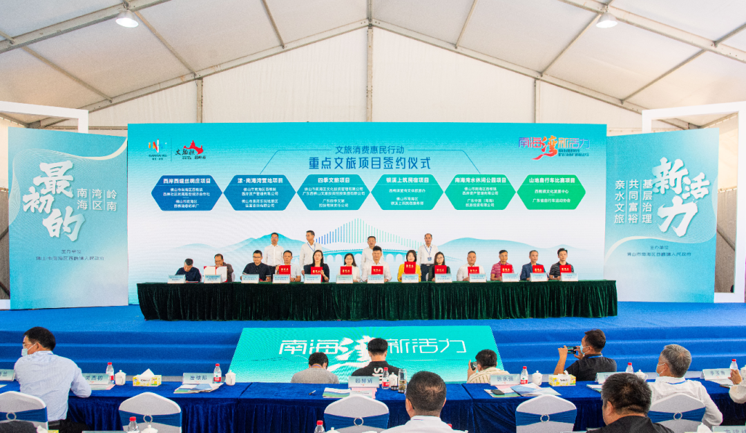 南海湾主打文旅产业的城市综合平台,当天,6个文旅项目与西樵镇,正式签约落户南海湾。其中包括:漾·南海湾项目、四季文旅项目、南海湾水休闲公园、山地自行车比赛、西岸西缇丝绸庄(晒莨场)和银溪上筑民宿项目。文旅消费惠民行动同步启动,送出文旅惠民消费“三张券”,为南海湾启航注入强劲动能。
