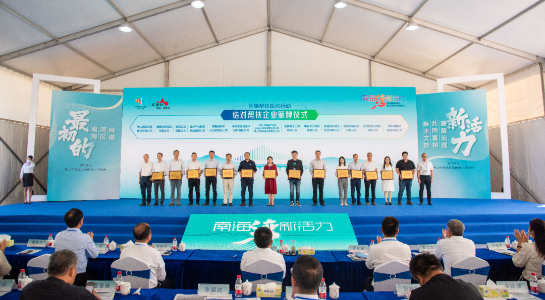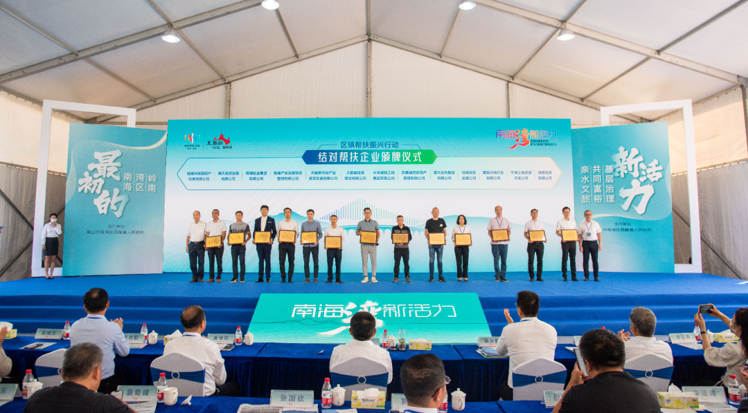 在区镇帮扶振兴行动中,来自南海区国资系统、桂城街道、西樵镇的26家企业,结对西岸社区26个经济社,通过社企结对,助力西岸社区振兴发展。大会对26个帮扶企业进行颁牌仪式。