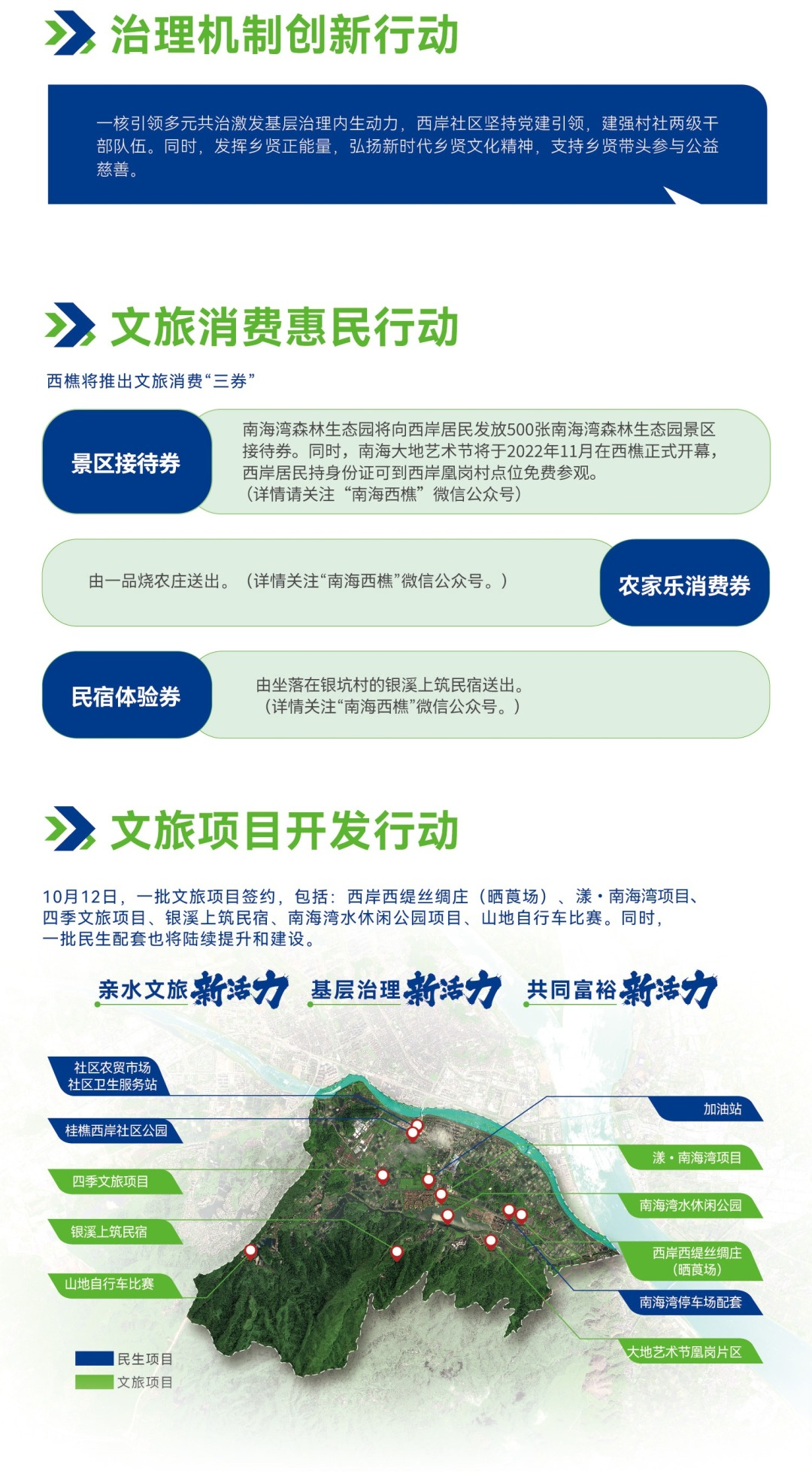 10月12日,南海区西樵镇举办“南海湾·新活力”南海湾战略规划发布暨“活力新西岸”建设启动大会,重磅发布了《南海湾发展战略规划》。现场区镇帮扶振兴、治理机制创新、文旅消费惠民、文旅项目开发四大行动同步启动,赋能“活力新西岸”建设!