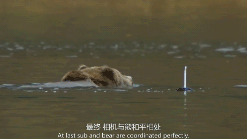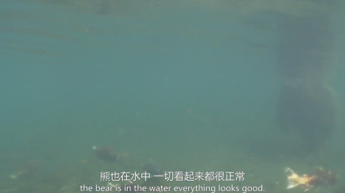 而棕熊下水的时候,