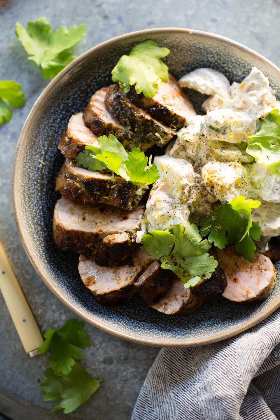 草药和大蒜盐烤制作。