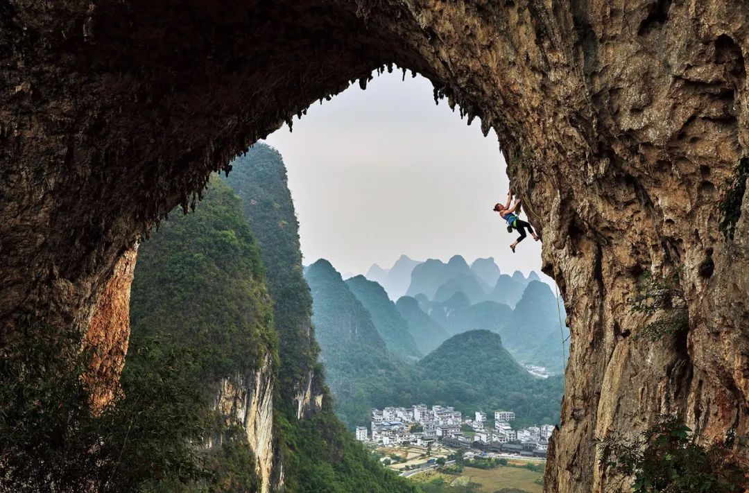 2019年11月7日,桂林阳朔。一名芬兰攀岩者在攀登著名的月亮山。图/ 视觉中国极限运动绝非只需要莽撞的勇气,真正热爱极限运动的人都知道, 这项运动呼唤理性和极强的安全意识。