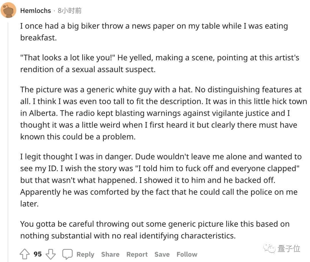 有网友甚至还举了自己因为和通缉令上的头像长得相似,被误认为是嫌疑人的例子,力证这一行为的不靠谱: