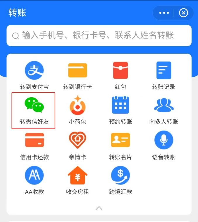 打开支付宝应用程序,点开里面的“转账”功能后,确实多了一个“转微信好友”的按钮,这或许是微信的绿色气泡标识第一次出现在蓝色的支付宝页面上。