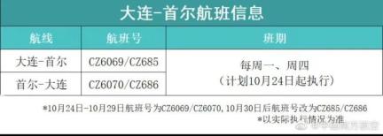 中国南方航空官方微博近日发布消息,10月7日起,南航恢复广州-法兰克福航班;10月23日起,南航将新增沈阳-首尔航班;10月24日开始,南航将恢复大连-首尔航班。
