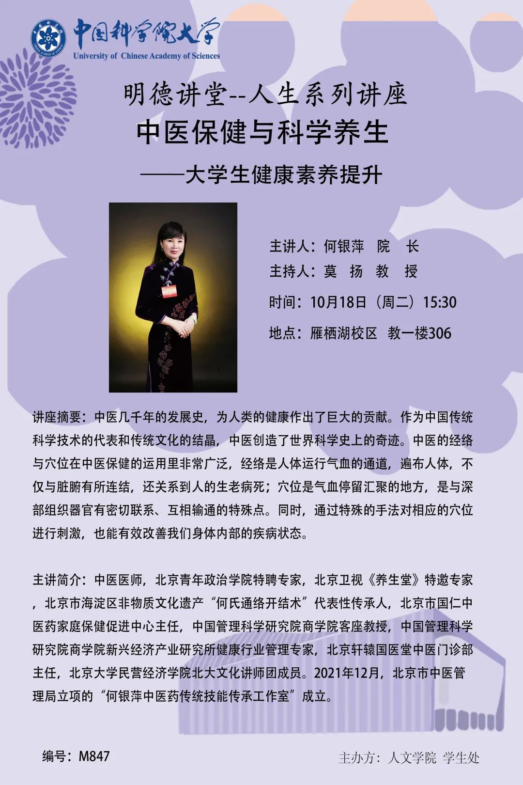 讲座主题:中医保健与科学养生——大学生健康素养提升