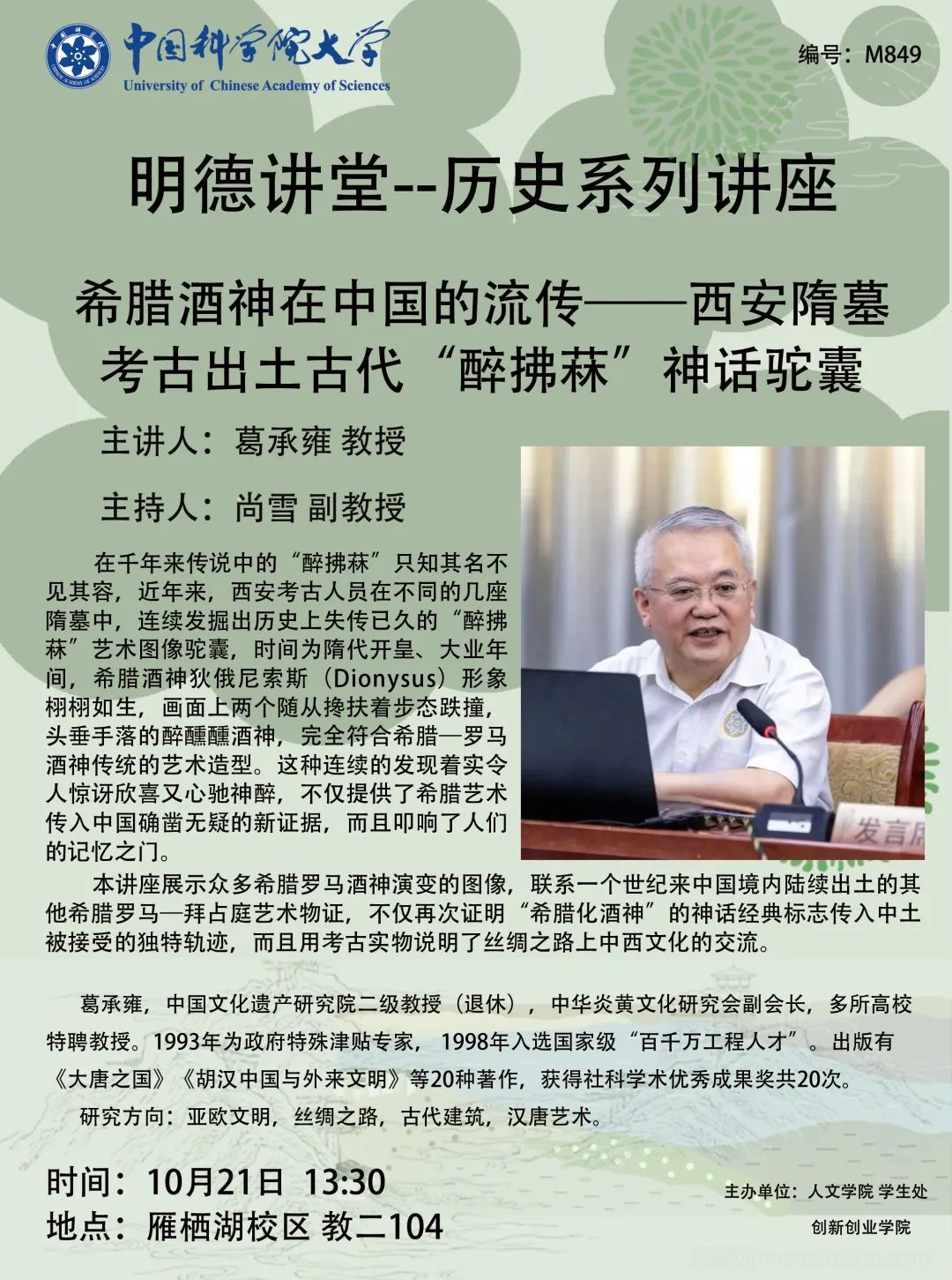 讲座主题:希腊酒神在中国的流传——西安隋墓考古出土古代“醉拂菻”神话驼囊