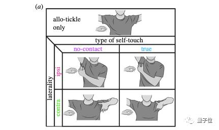 研究者先让受试者自己咯吱自己一侧腋窝,作为对比,再在自己咯吱同时,也让他人分别在同侧、异侧咯吱腋窝,观察反应。