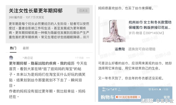 豆瓣上有友邻发帖,直到自己的母亲自缢,才关注到她的更年期抑郁