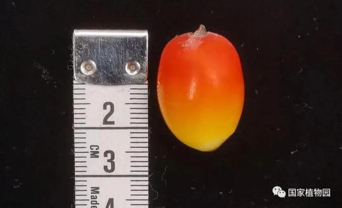 而今年从群体开花中的单株采集到的花粉依次向下授粉,花后果实顺利膨大、着色,8月对果实进行解剖发现了明显的胚。随后,花序柄迅速加长