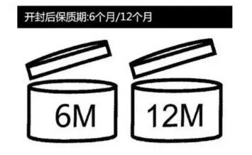 ▶ 另一种是“开盖保质期”,细心的小仙女们会发现有些化妆品的包装上有一个“开盖小罐子”的图标,在其内部有“6M”或“12M”等字样,“M”代表月份,如“6M”意味着开封后6个月是最佳使用期限。