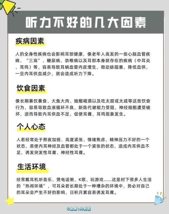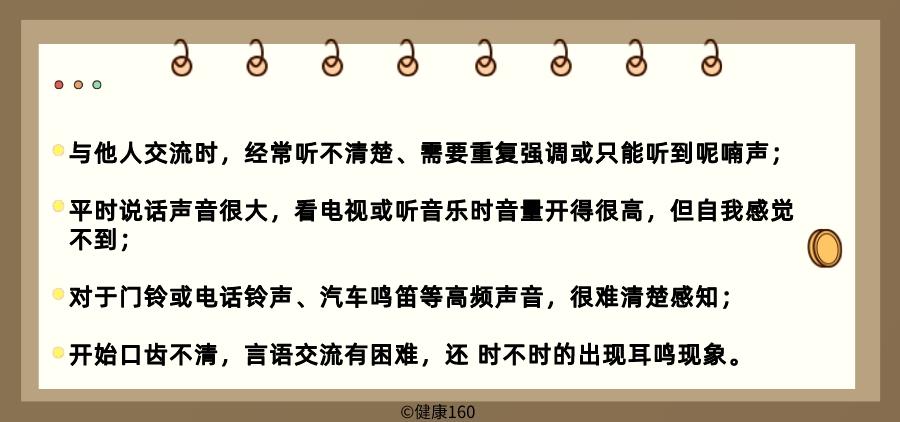 首先,当我们自己或家人出现以下情况时,就应警惕可能发生听力损失,建议及早就医检查: