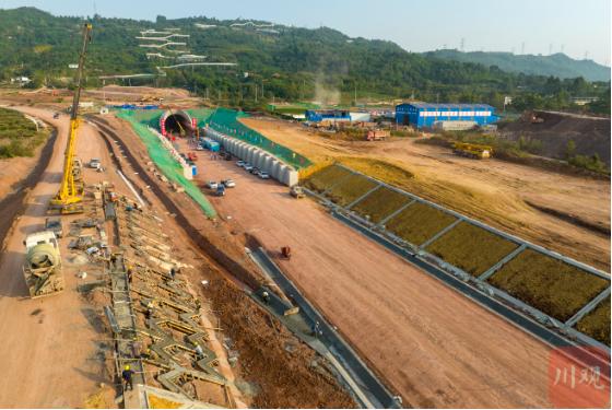 成自宜高铁龙泉山一号隧道进口端航拍。成兰公司供图全线建设即将“转段”
