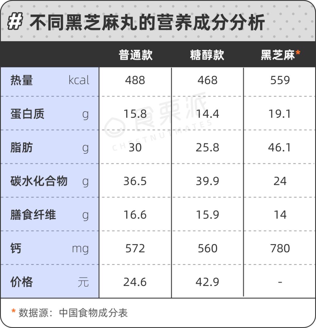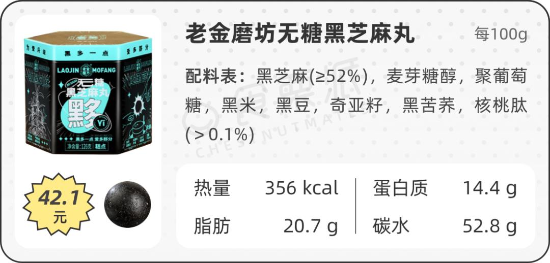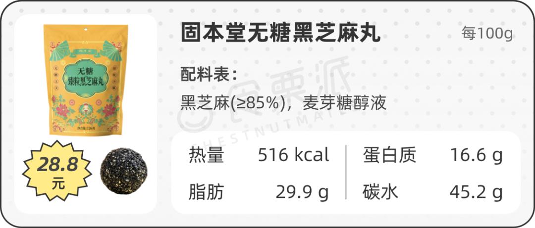 如果不是一次吃10个20个,也不用太担心糖的问题,毕竟黑芝麻丸中的主要原料还是黑芝麻,就算是直接吃蜂蜜款,糖含量也不高。