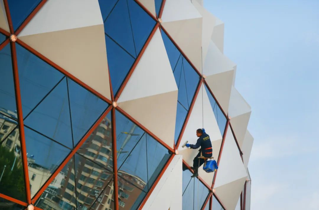 第五届中国杂技艺术节将于11月8日至13日在我市举办。10月22日,记者看到 “蜘蛛侠”们正对水秀国际大剧院的外墙球体进行清洗。作为第五届中国杂技艺术节的主会场,它不仅承担着剧目展演和开、闭幕式等活动,而且还是第十一届中国杂技金菊奖杂技节目奖终评比赛的唯一比赛场地。