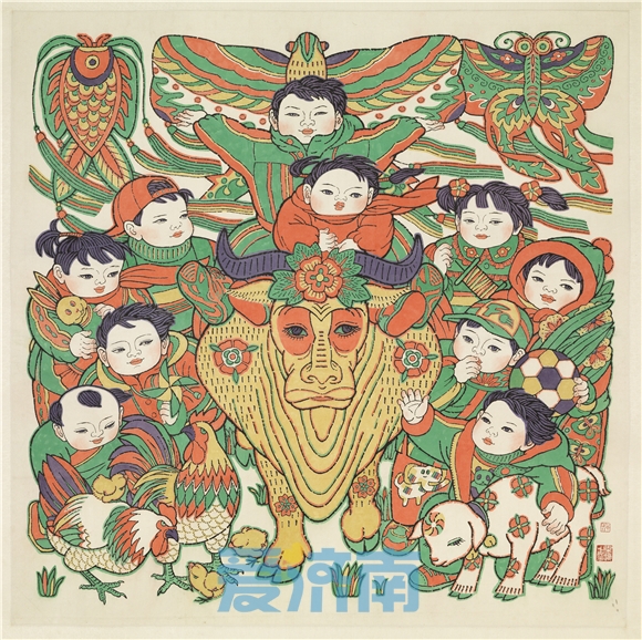 单应桂年画作品丨《春牛图》而国画大师李可染的鼓励,更让单应桂坚定了把年画艺术传承发展下去的信心。1956年,单应桂考入中央美术学院,师从叶浅予、李可染、李苦禅、蒋兆和、刘凌沧等先生。大学二年级时,单应桂创作了一幅年画《和平幸福》,童年对于年画的情愫流淌到了笔尖,跃然纸上。可她的内心却十分忐忑,“在高等学府里,画的都是阳春白雪的东西,我突然间换了个下里巴人,能不能被接受?”不料,这张年画得到了她的老师李可染的肯定:“这张年画很有味。”单应桂回忆:“他说这个是中国的,很好,你就画下去。”在那个时代,李可染的这种认可不仅是肯定了单应桂的个人作品,更明确了一种艺术理念。“现在我们都知道年画和民族文化传承联系在一起,但那个时候在单应桂心中尚不十分明确。对于民间艺术,是褒还是贬?是瞧得起还是瞧不起?李可染先生说明了这个东西不是下里巴人,它代表了中华民族。”老师的首肯,让单应桂确定了一生国画、年画并行的创作方向。