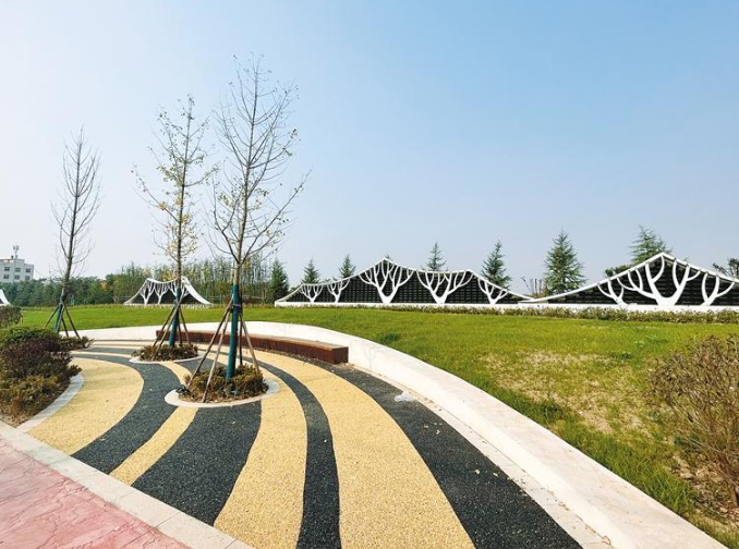 记者看到,道路两侧建成的休闲公园内,白色的树状景观墙上已经密密匝匝地放置了小花盆,等各色时令花卉载种上后,将会呈现出更不一样的气质。