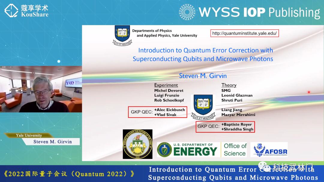 Steven Girvin院士作题为《超导量子位和微波光子的量子纠错》的报告美国国家科学院院士、耶鲁大学教授Steven Girvin作了题为《超导量子位和微波光子的量子纠错》的报告,介绍了量子纠错背后的概念,并描述了玻色码(以微波光子态存储信息)相对于传统量子位码的优势。
