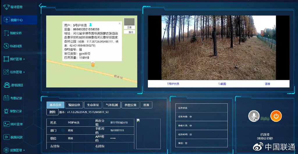 正执行防火巡护任务的护林员处于什么位置?已巡查了哪些区域?护林员现在的身体状况是否良好?地面人工巡护是森林防火不可或缺的重要方式,但对于辽阔的百万亩林海来说,实时掌握这些信息不太容易。为此,河北联通在塞罕坝机械林场打造了“护林员实时定位管理系统”,帮助管理人员随时掌握护林员在一线的巡护情况。