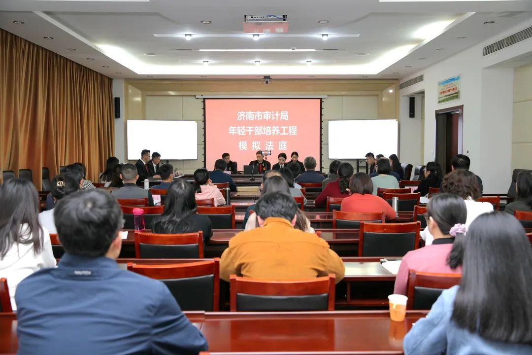 10月21日,历下法院联合济南市审计局组织举办行政诉讼“模拟法庭”活动。济南市审计局党组成员、有关处室负责人、市审计局年轻干部、各区县审计局有关人员参加活动。历下法院行政审判庭副庭长刘文应邀担任此次“模拟法庭”的审判长。