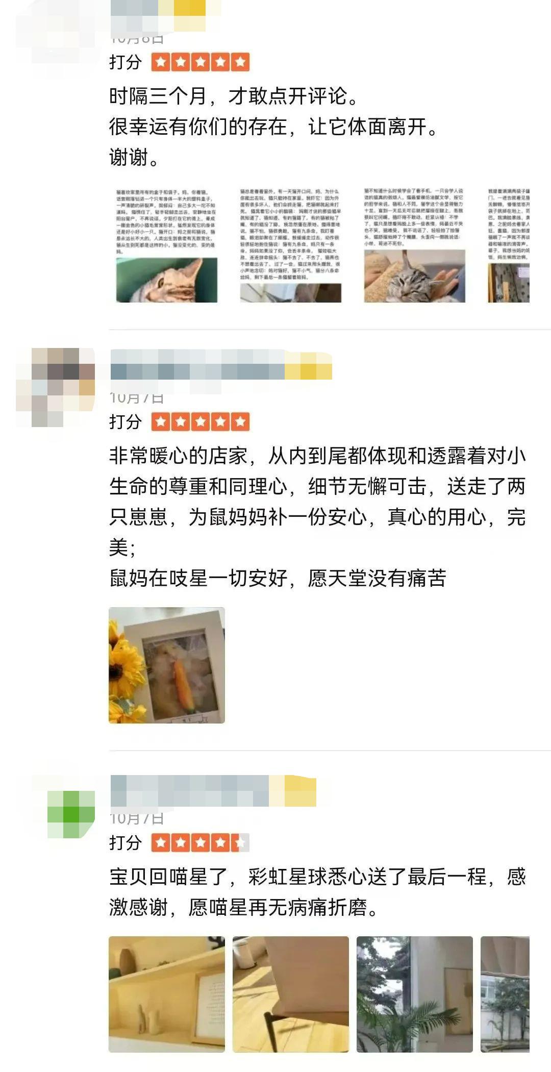 宠物殡葬机构的评论区,主人们怀念逝去的宠物并表达感谢不受欢迎的宠物殡葬店
