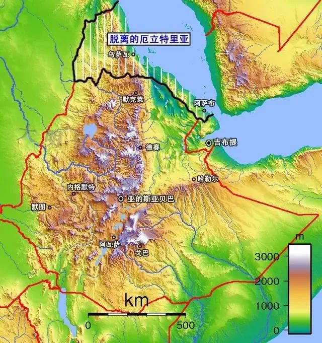▲厄立特里亚于埃塞俄比亚的重要位置