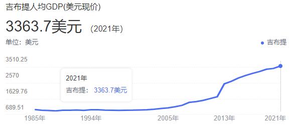 所以就经济来说,吉布提虽然目前仍面临自然资源贫乏,工农业基础薄弱等困难,但得益于自己的地理优势与周边环境,人均GDP已经从本世纪开始的700美元,在2021年达到了3300美元,放在非洲也算是不错了。