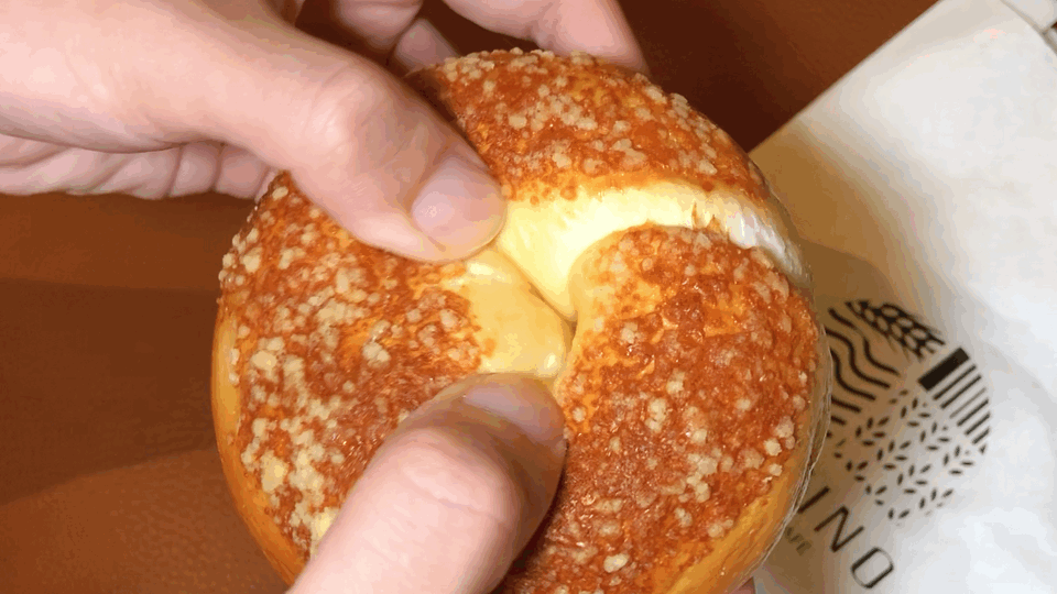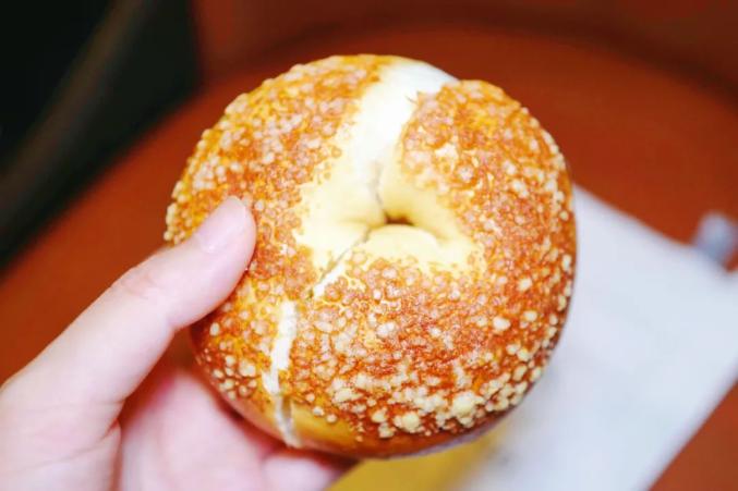 乳酪贝果的内芯塞满了特调的乳酪配上麦香的面包,二者比例刚刚好,吃完一个也不会腻。